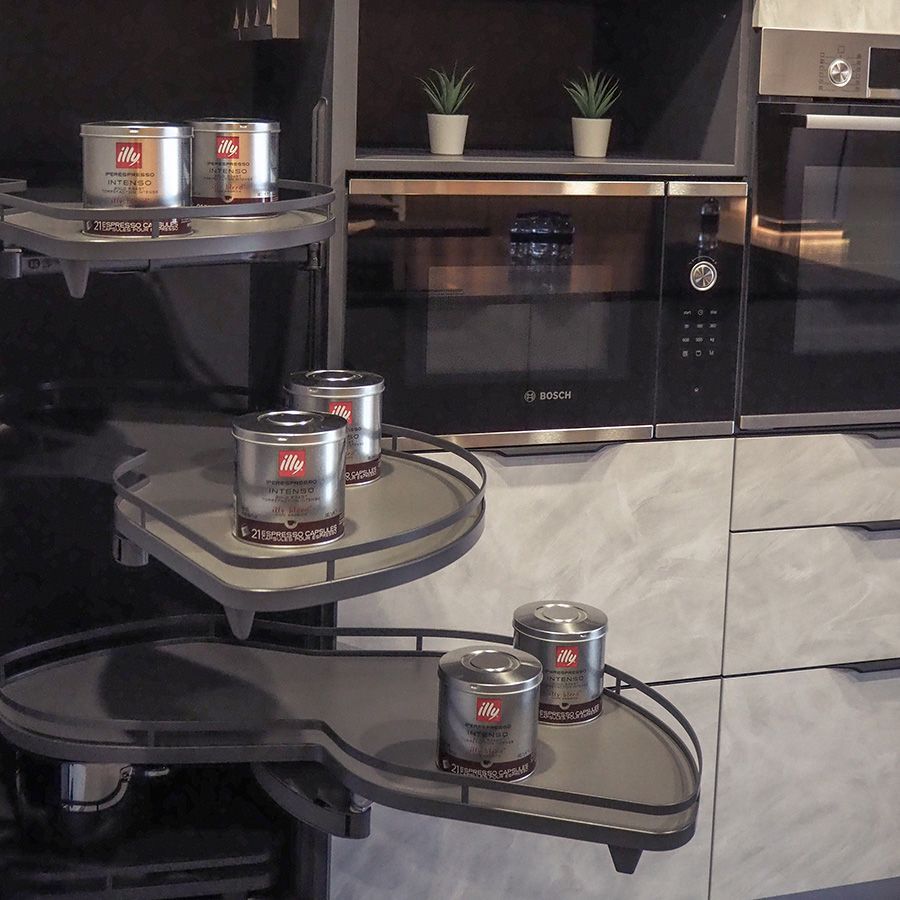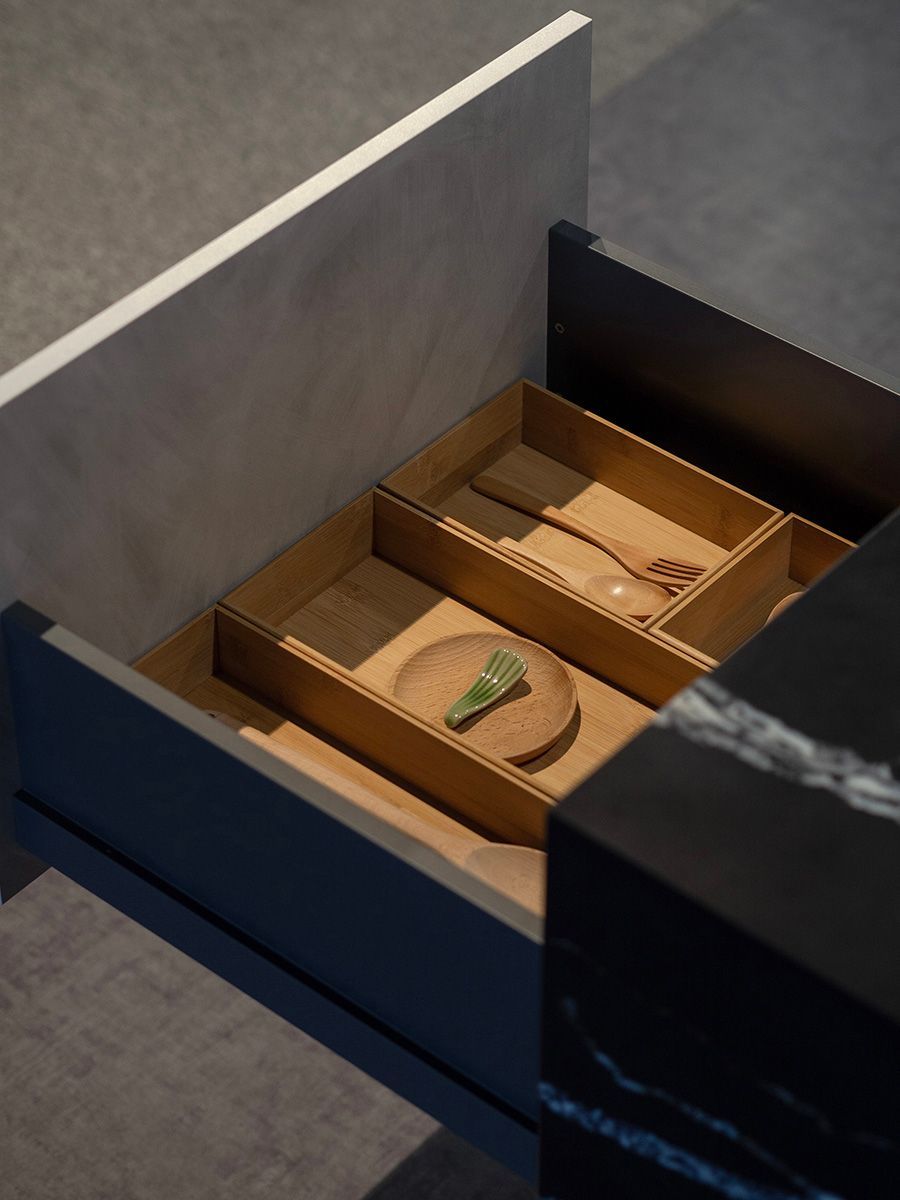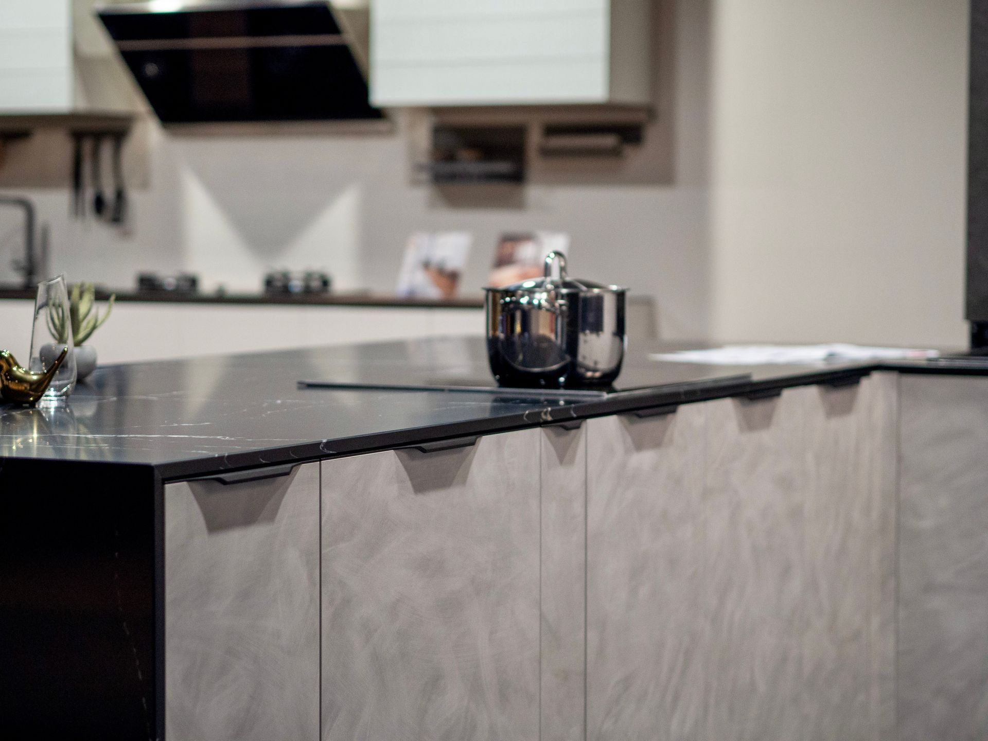 A kitchen that embodies a sense of industrial style with light grey tone.