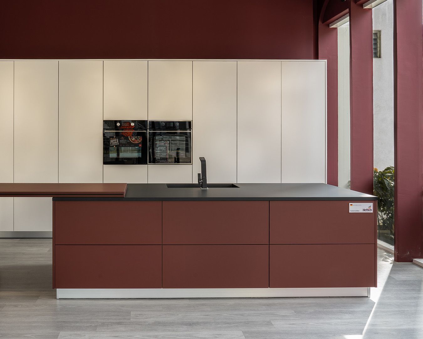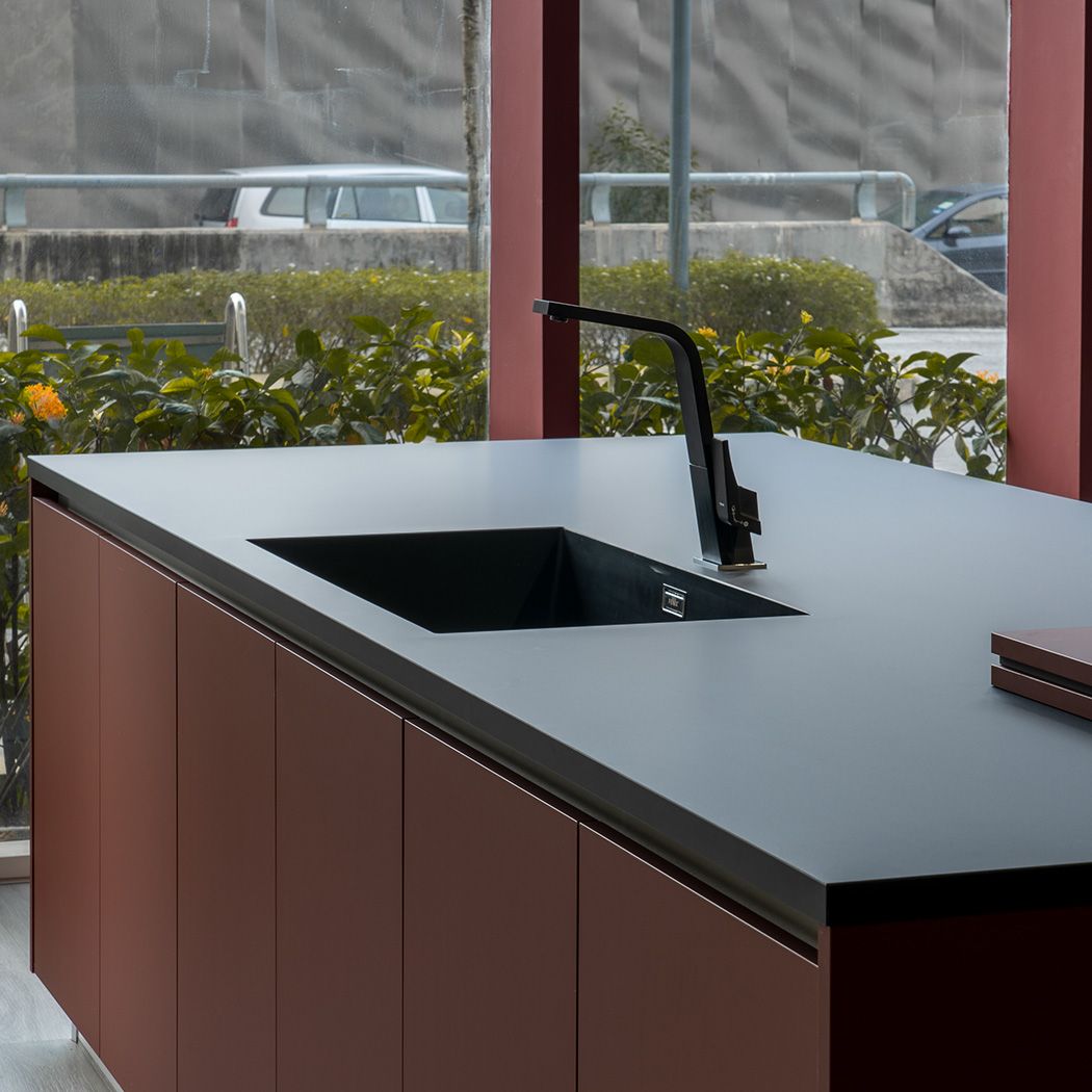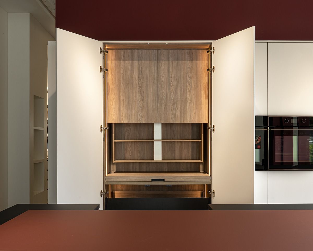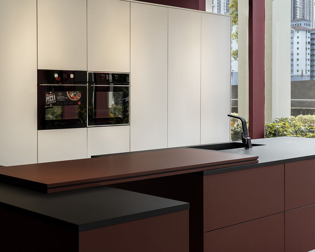 A kitchen where timeless red meets innovation - matte, soft-touch, and build for durability with FENIX®