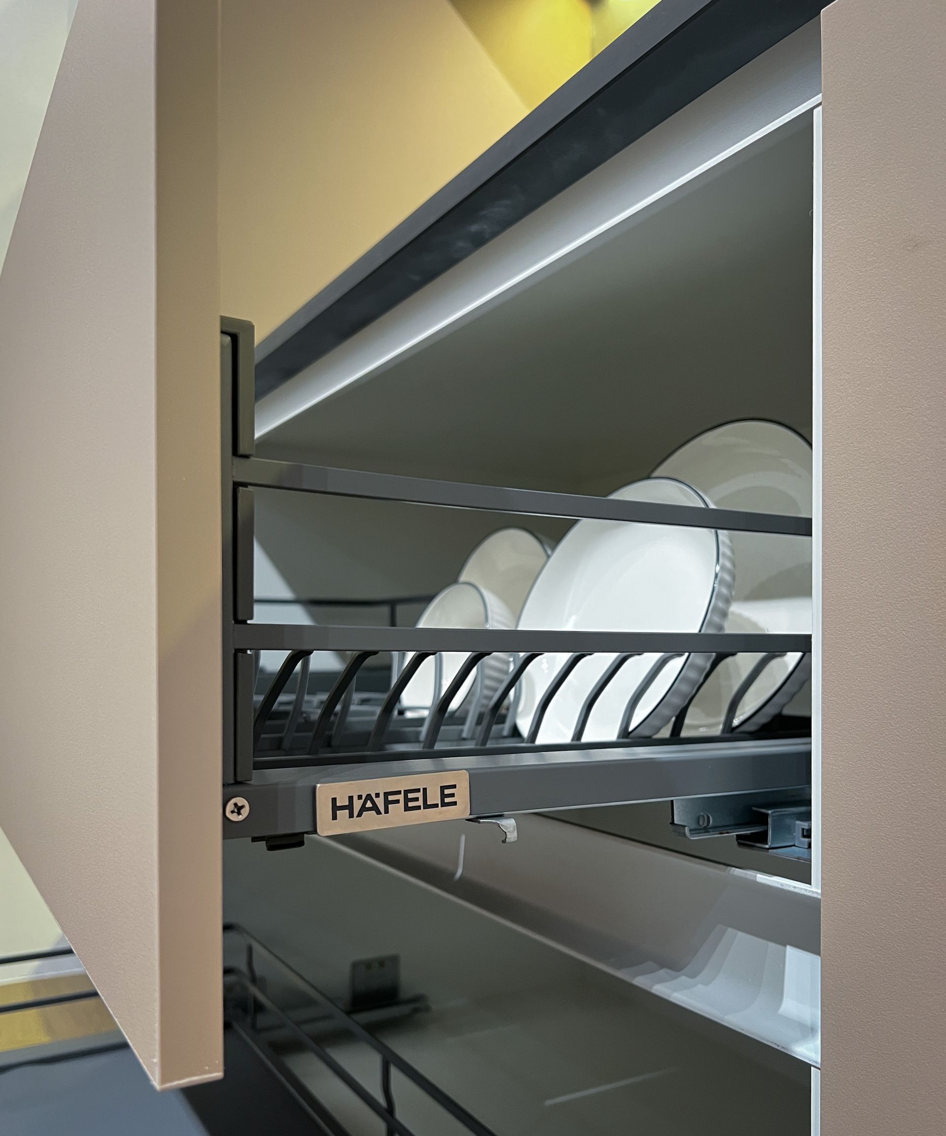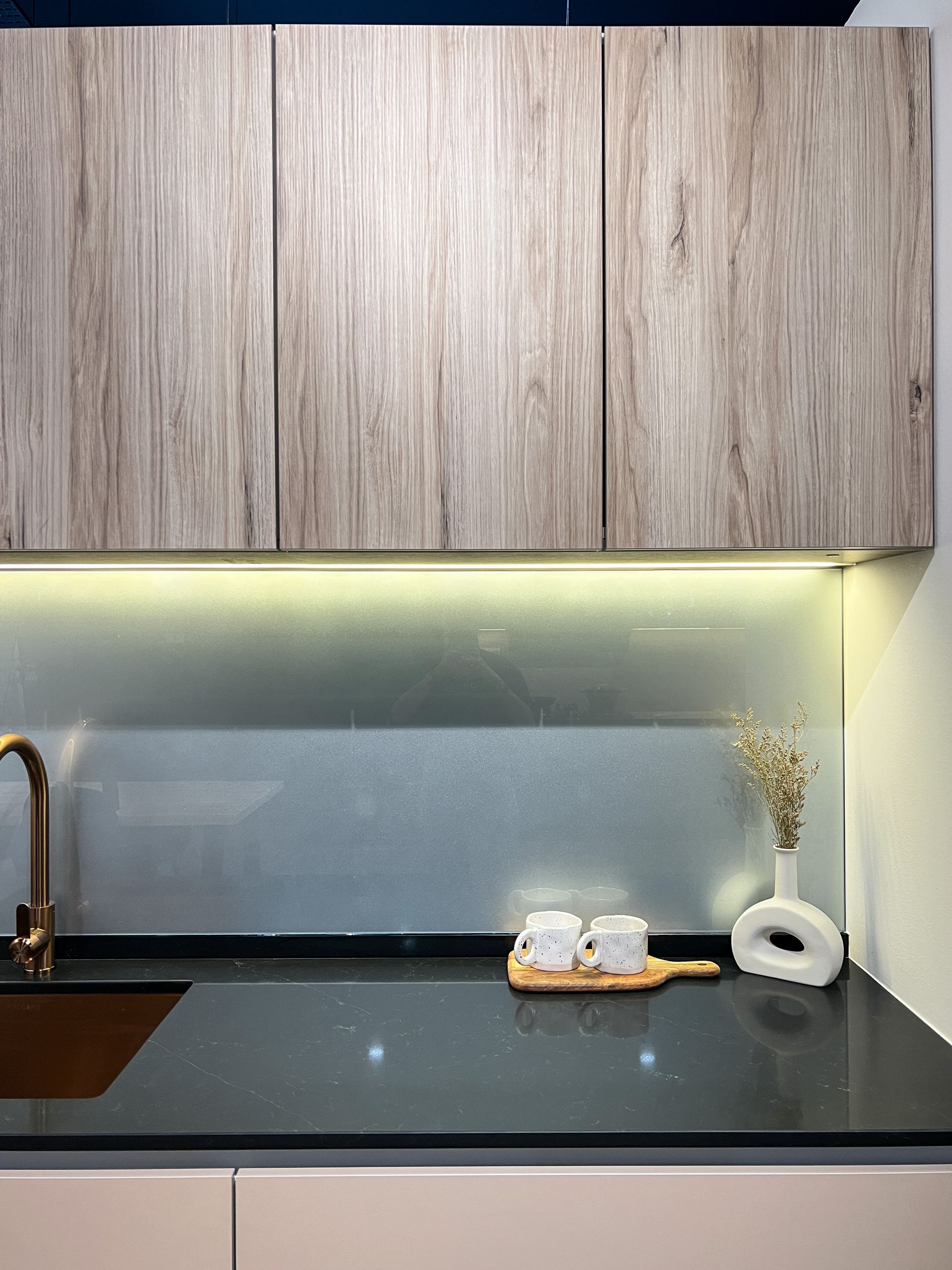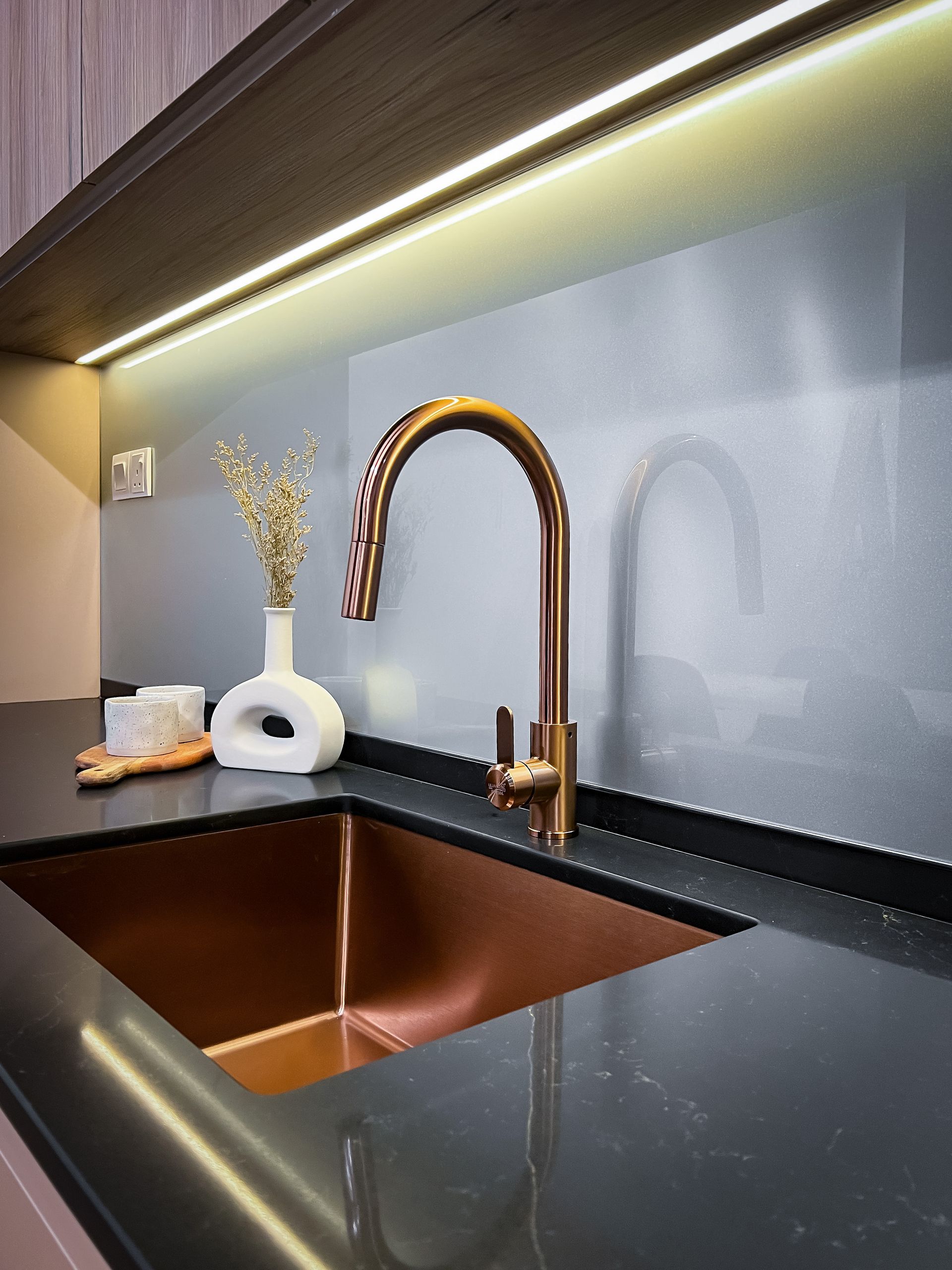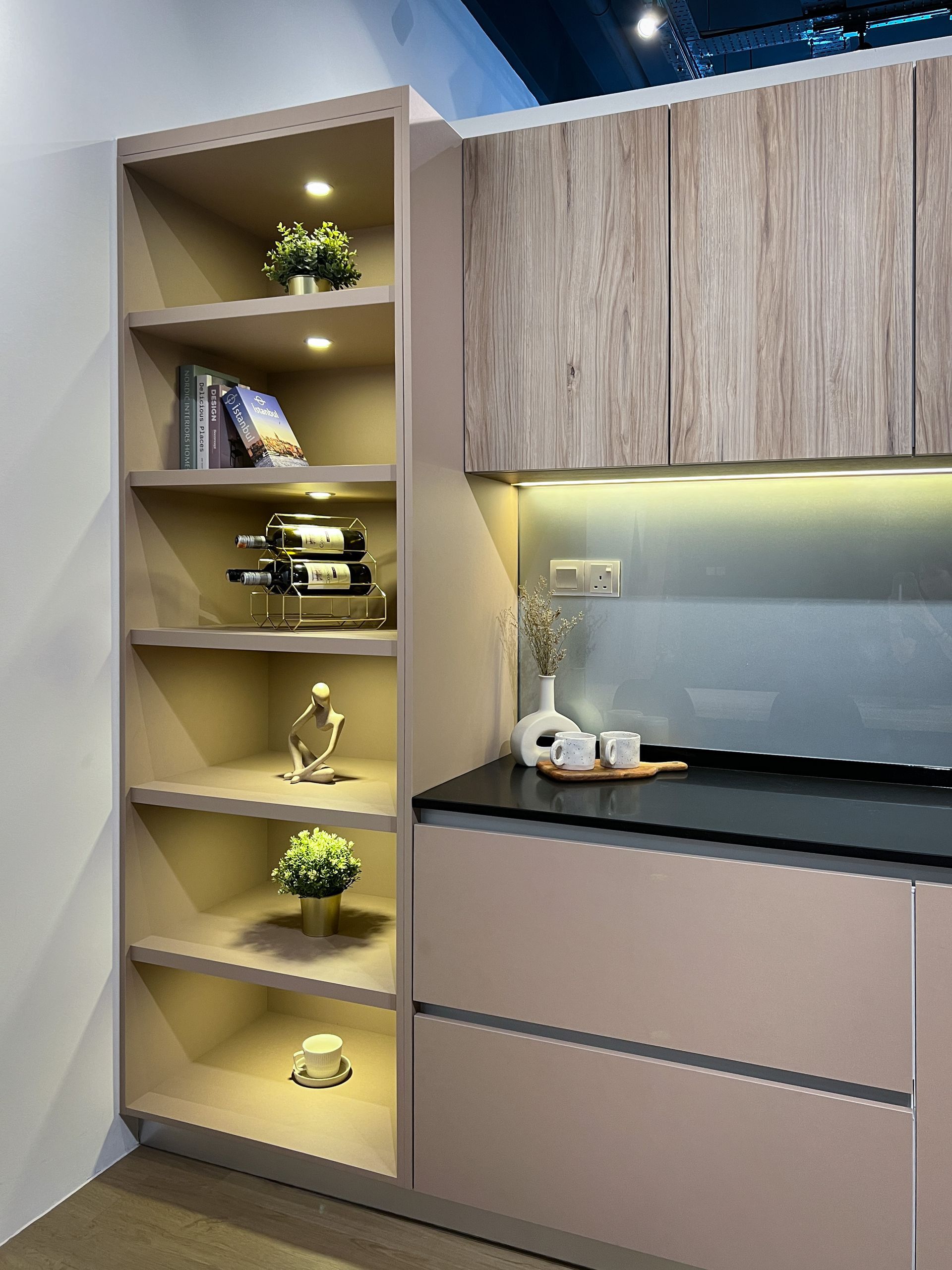 A kitchen that radiates warmth and charm, wrapped in soft pastel blush tones.