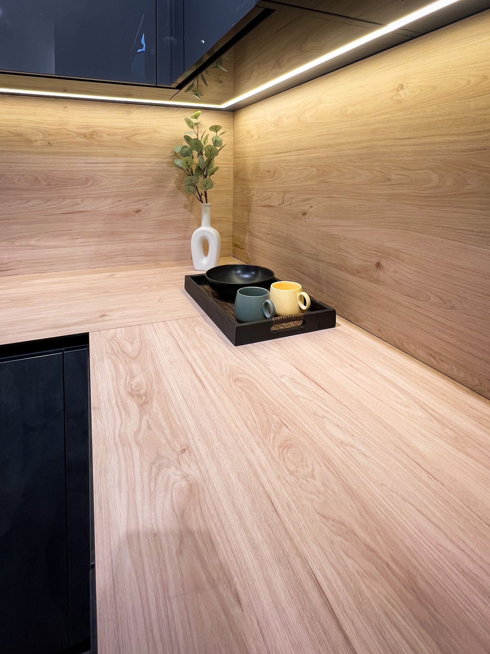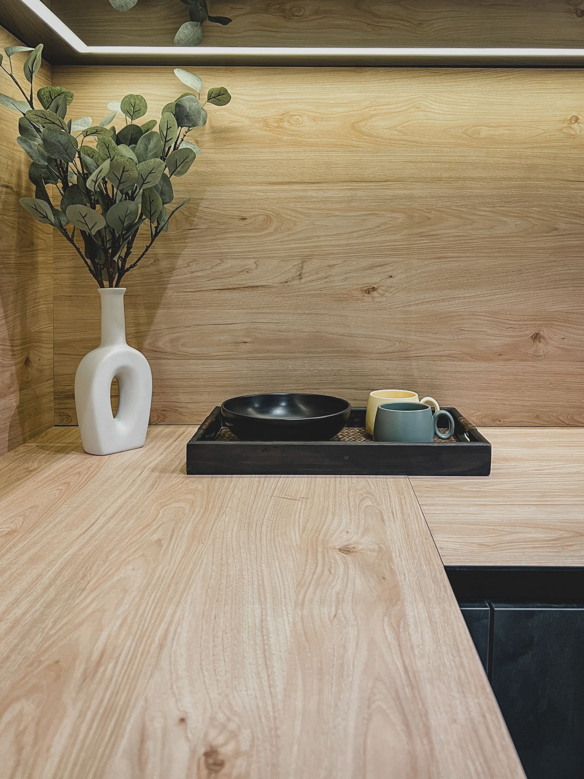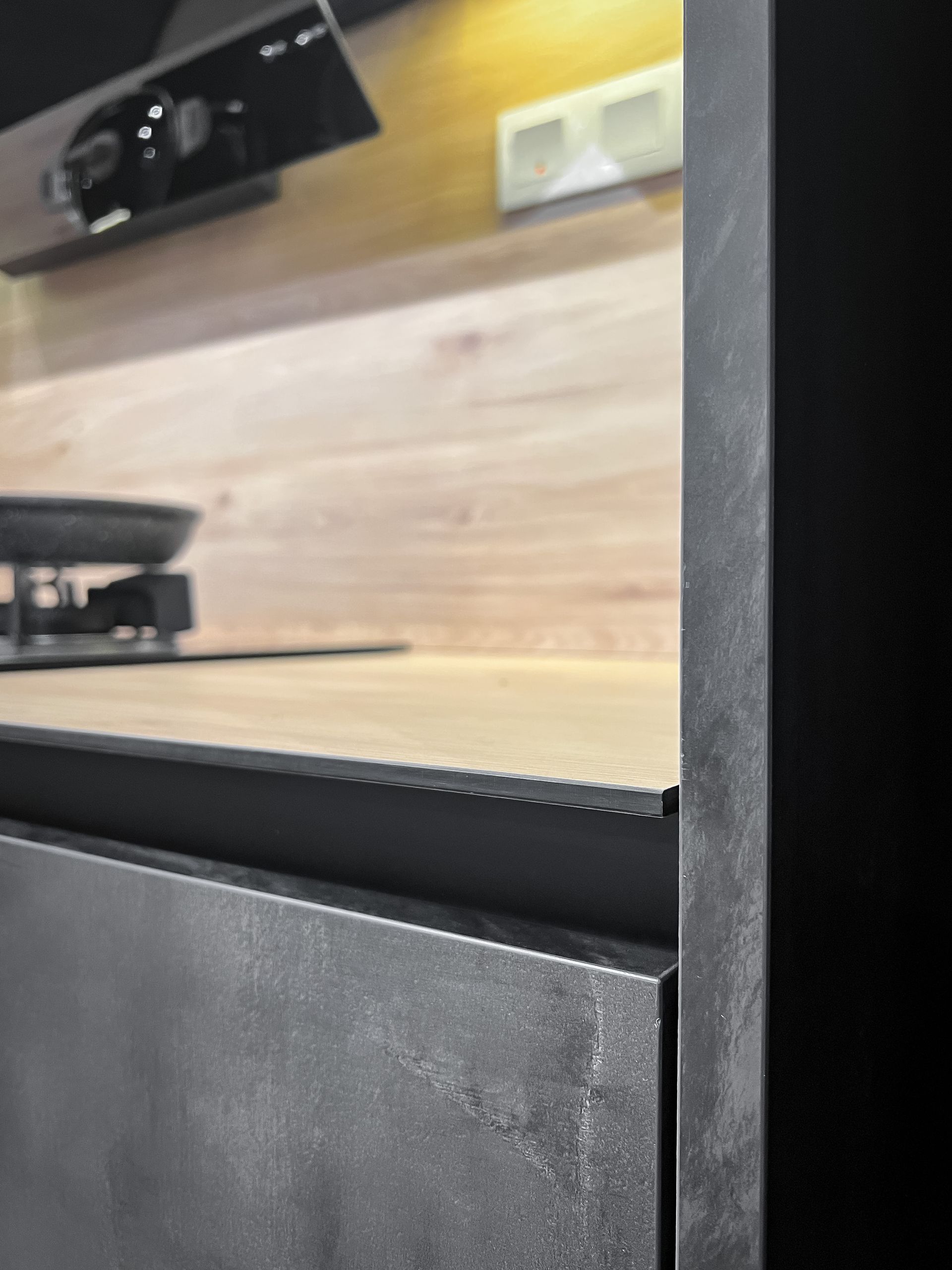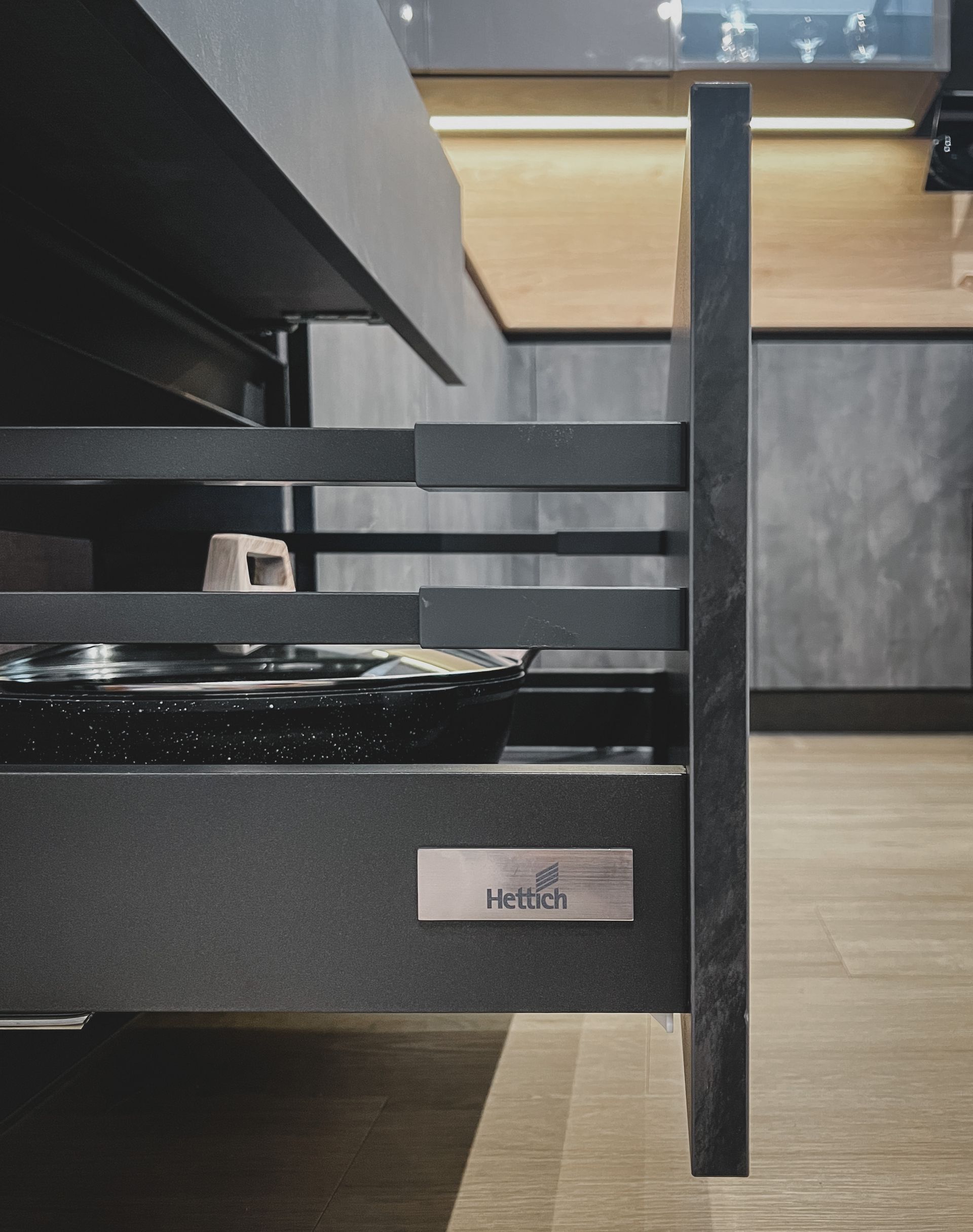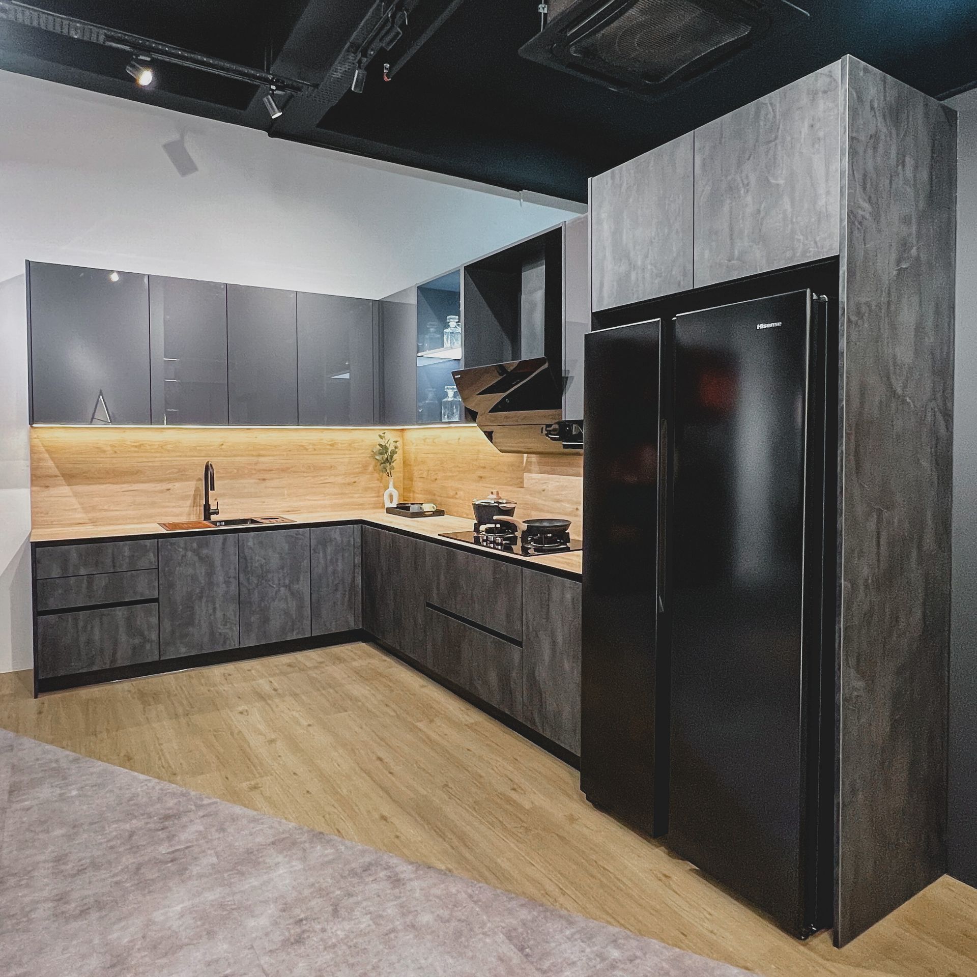 A kitchen that blends modern elegance with rustic charm - warm wood accents meet sleek gray tones for the perfect balance of comfort and style.